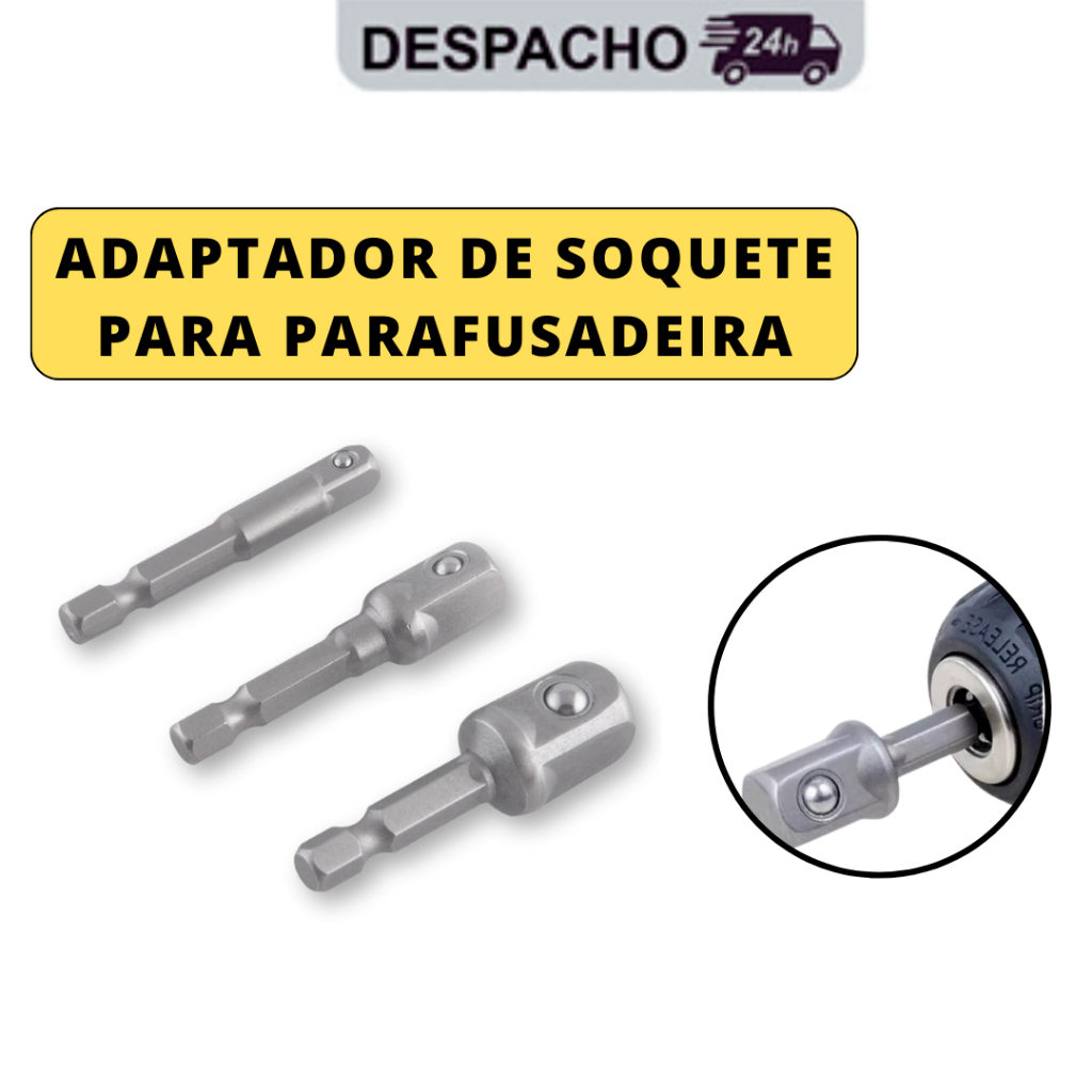 Jogo 3 Peças Adaptador Soquete Para Parafusadeira 1/4" 3/8" 1/2" Aço