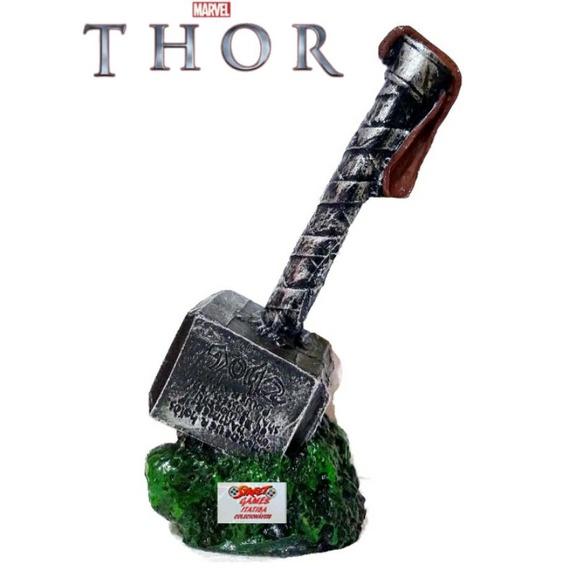 Martelo resina Mjolnir Thor Com Base Colecionável