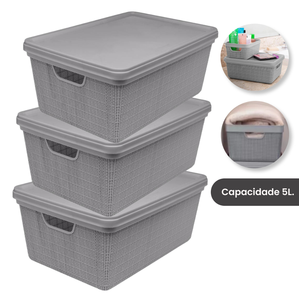 Kit 3 Caixa Organizadora Cesto com tampa grande em plástico em Promoção 5 Litros