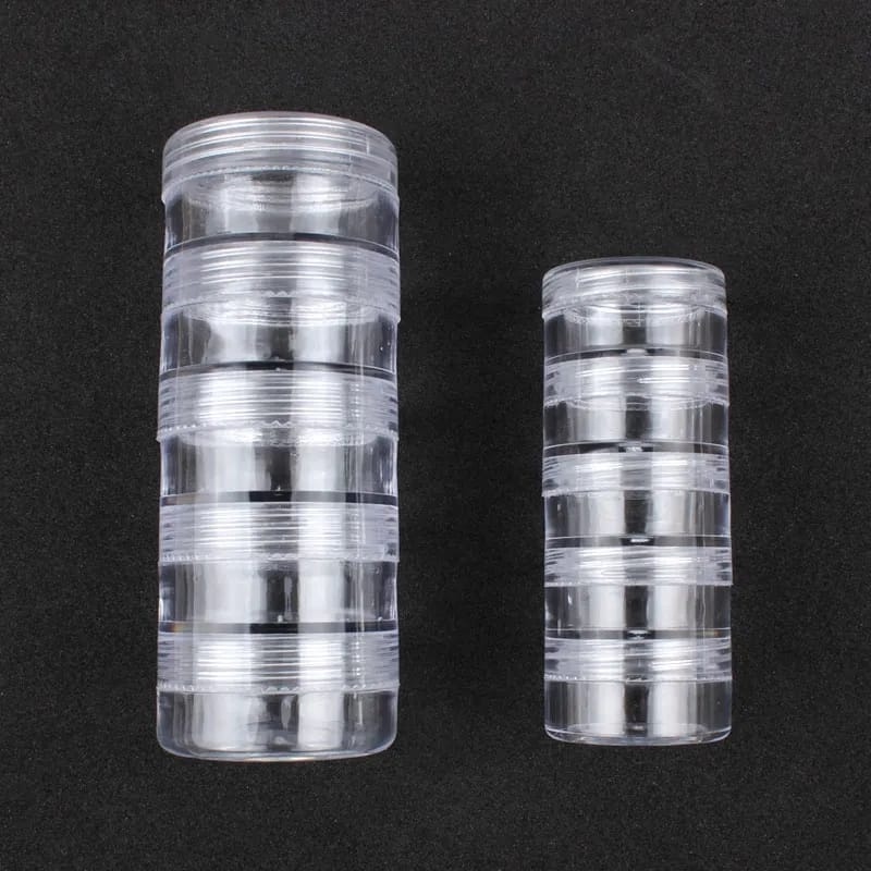 Torre Para Glitter Pequena Cristal Com 5 Potinhos Acrílicos Porta Decoração De Unhas Gel