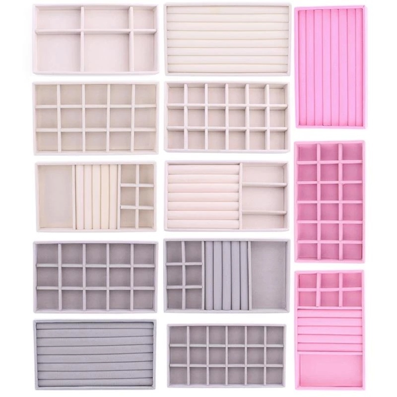 Veludo Bandeja De Joias DIY Acessórios Para Brincos De Toragem Colar De Produto Acabado Caixa De Exibição Cinza Bege Rosa Organizador
