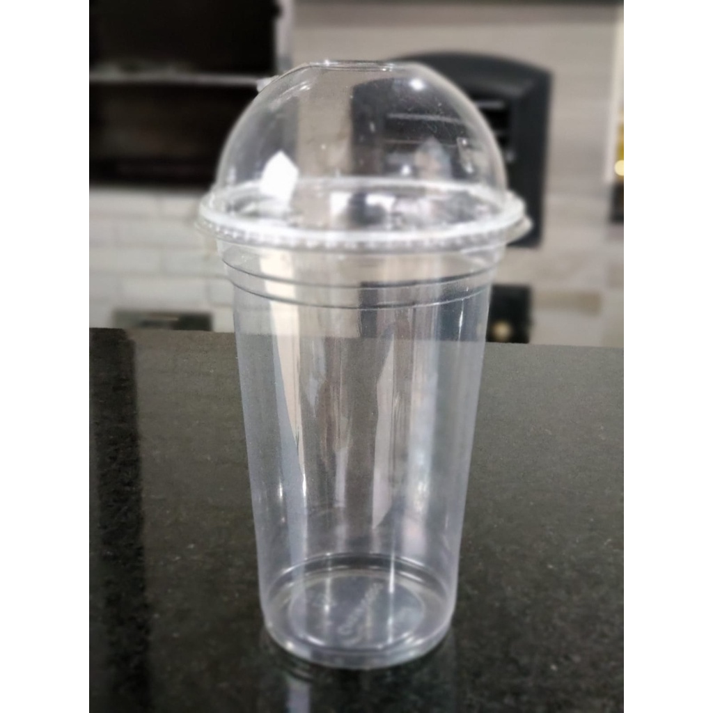 50 un Copo PP 500/550ml c/Tampa Bolha PET Sem Furo Domo Cristal Transparente Resistente
