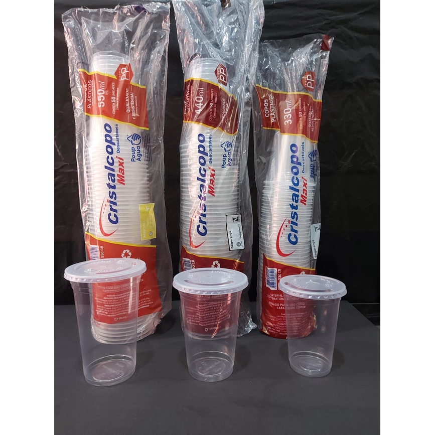 50 un Copo 500/550 ml PP Cristal Maxi c/Tampa Reta Sem Furo