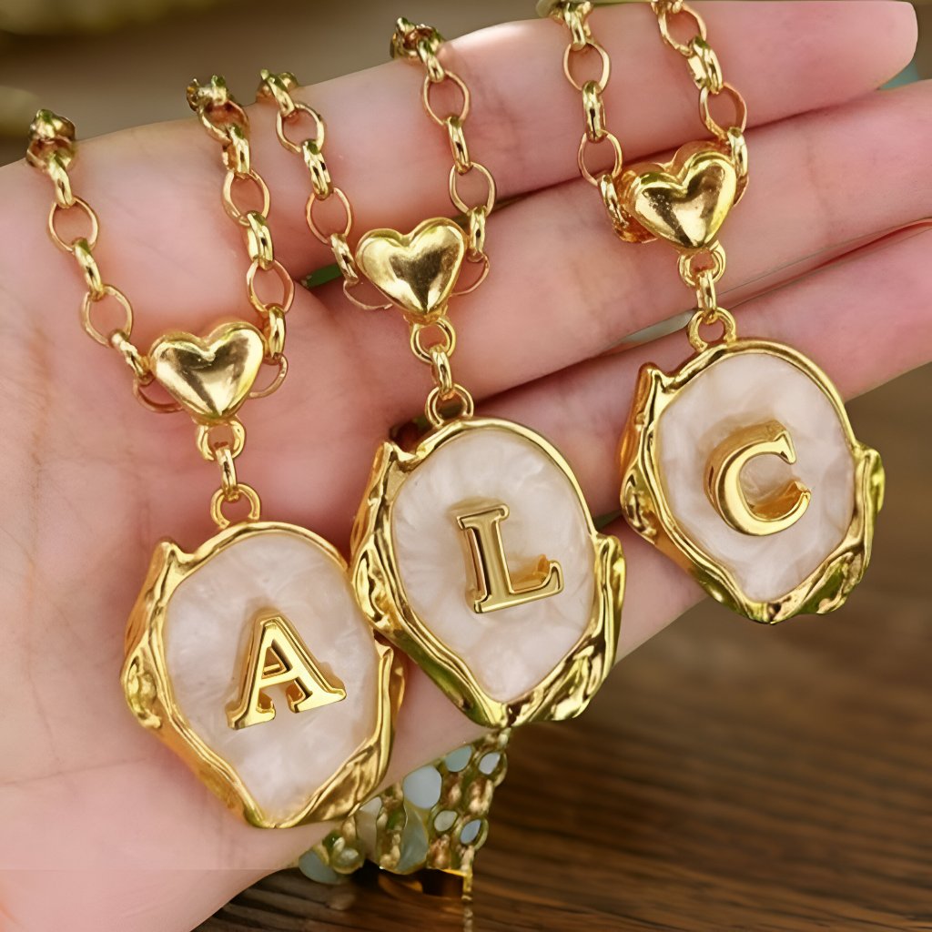 Colar Coração Com Pingente Inicial do Nome Super Tendência Feminino