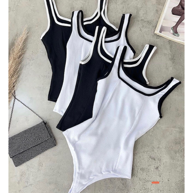 Bory Regata Tendência Preto e Branco body Black White bicolor Feminino básico alça média verão