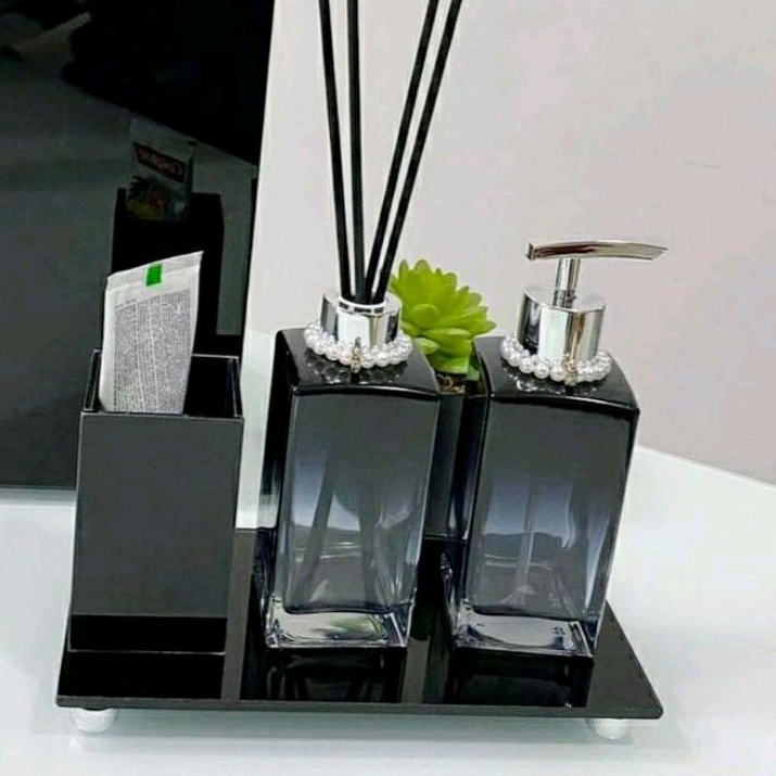 Kit Lavabo Branco Degrade Com Porta Escova Sabonete Líquido e Aromatizador de Ambiente Bandeja Luxo