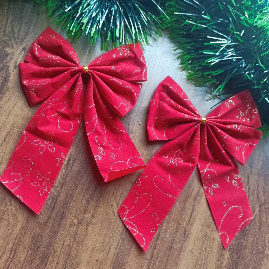Kit 2/Kit 4 Laços De 15cm Vermelho Com Brilho Enfeite De Árvore De Natal Para Decoração De Festa De Natal