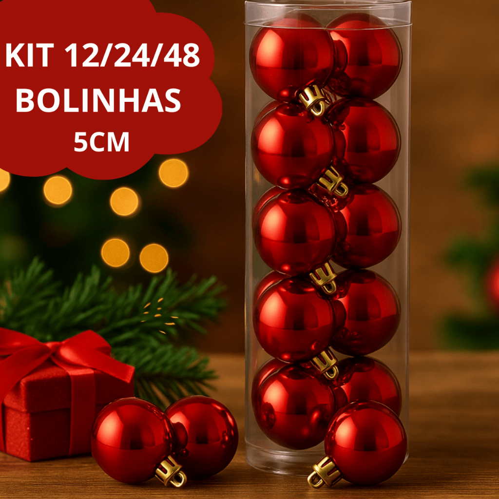 Kit 12/24/48 Bolinhas Bola de Natal 5CM Decoração Para Arvore Natalina Luxo Enfeites Dourado Vermelho Premium
