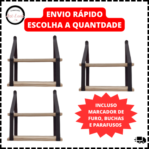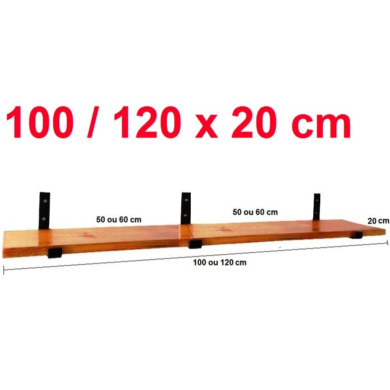 Prateleira De Madeira Maciça Pinus Nicho Com Mão Francesa de Ferro Industrial Decoração Organizadora Nicho
