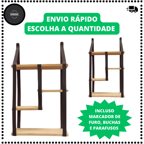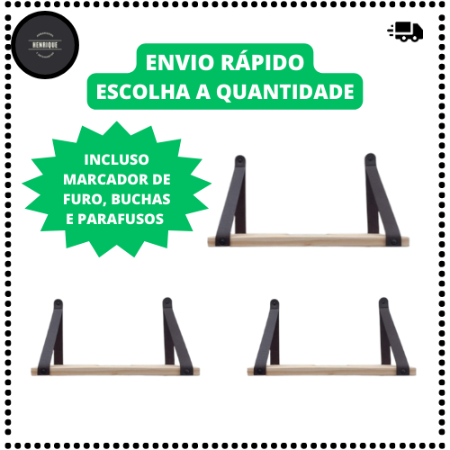 Par de Alças reforçadas acompanha prateleira 30 / 45 / 60 cm MDF ou Madeira Pinus - Alças de 4 cm de largura com Textura de Couro + Tampa de plástico