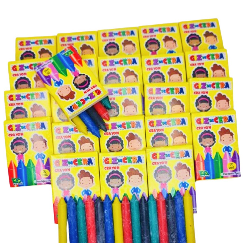 20 cx Mini Giz de Cera 5 Cores P/ Kit Festa Lembrancinha Artesanato Infantil
