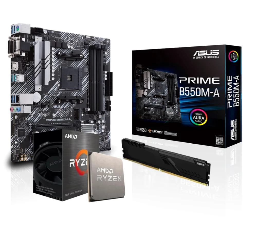 Kit Upgrade Amd Ryzen 5 5500, Placa Mãe Asus Prime B550m-a, Memória Ram 8GB 3200mhz