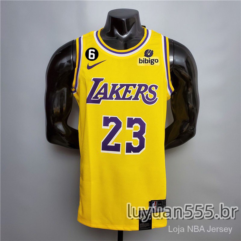 Homens Camisa 2023nba Los Angeles Lakers 23 LeBron James Camiseta de Yellow Star Basquetebol Jersey
