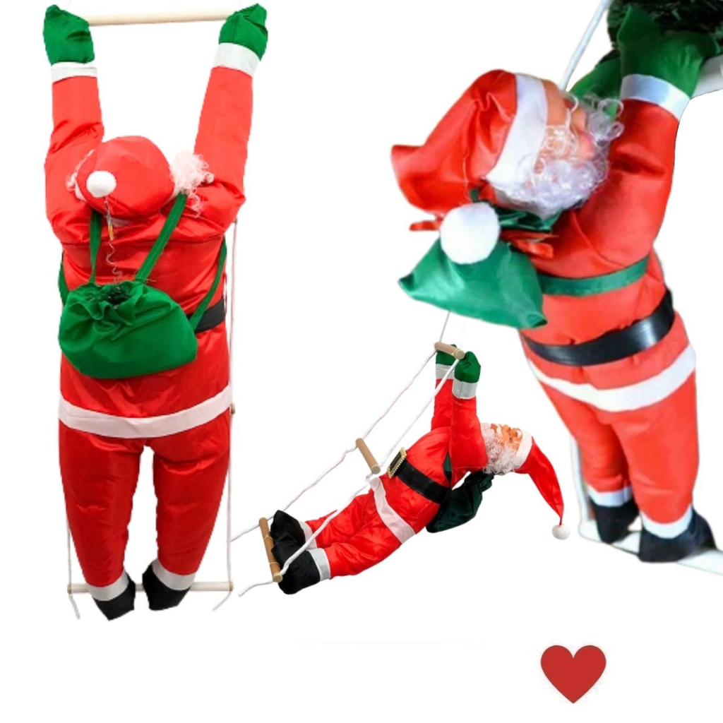 Papai Noel Subindo Escadas 90cm Escalador Enfeite Decoração Natalina p/ Árvore de Natal Varanda Janela Chaminé Porta