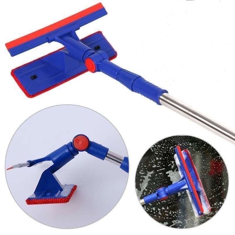 Rodo Limpa Vidros Limpador Mágico Para Janelas Com Cabo Articulado e Reforçado Extensor Telescópio Mop 2 em 1