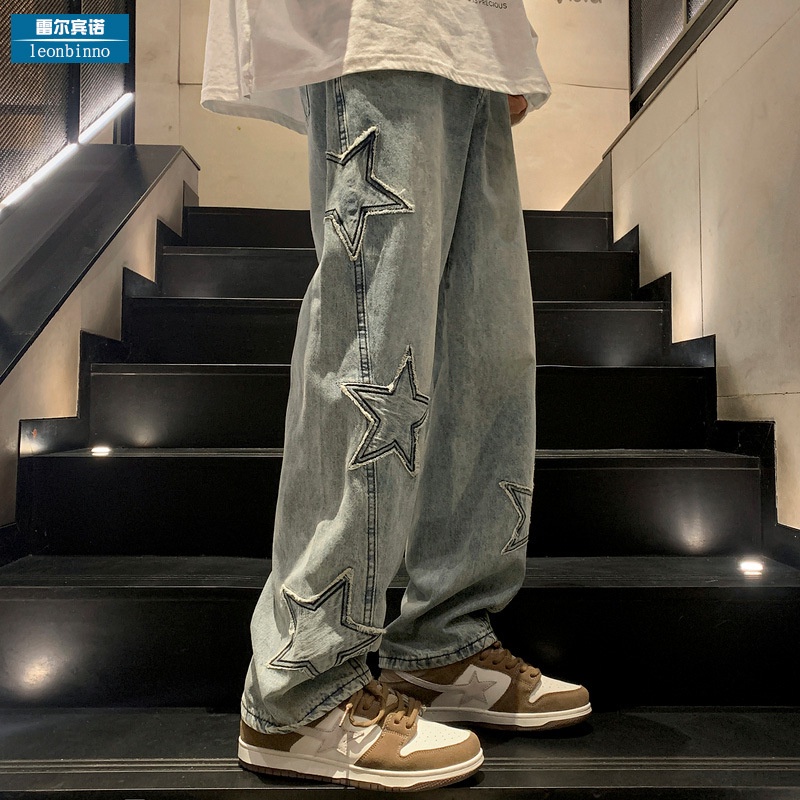 Calça Jeans Estrela Cinco Pontas Masculina De Outono Inverno Americana High Street Wear Pants Alongada Direita De Limpeza De Pernas Largas 23 Primavera Novo