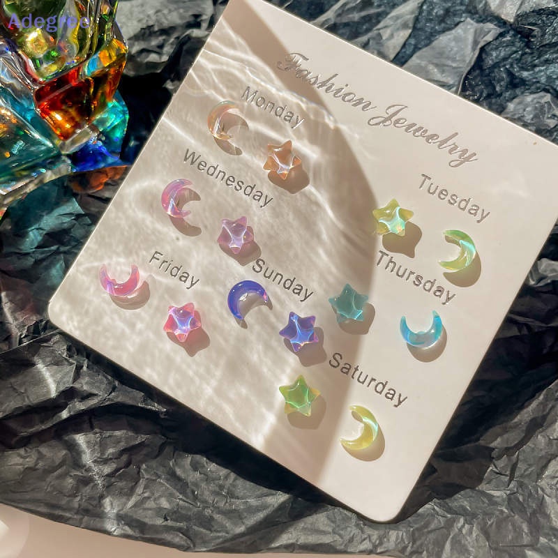 Adegree 1Set Fada Fantástica Colorida Estrela Da Lua Conjunto De Brincos De Cavilha Mulher Y2K Púrpura Rosa Transparente Fofos Jóias Presente Novo