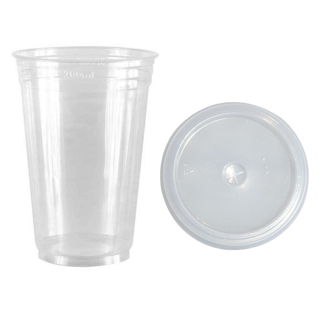 50un Copo Liso Descartável PP Açaí Milk Shake 300ml C/ Tampa