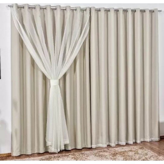 Cortina Voil Com Forro Blackout Tecido 5,00 X 2,50 Corta Luz para decoração de quarto