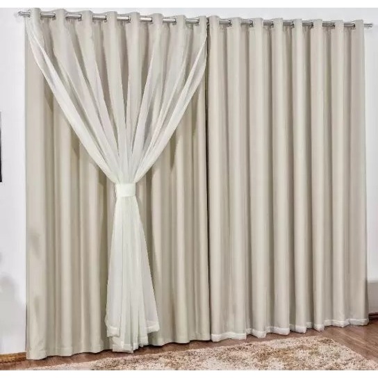 Cortina Quarto Sala Corta Luz Blackout em Tecido Com Voil 2,00 L X 1,40 A