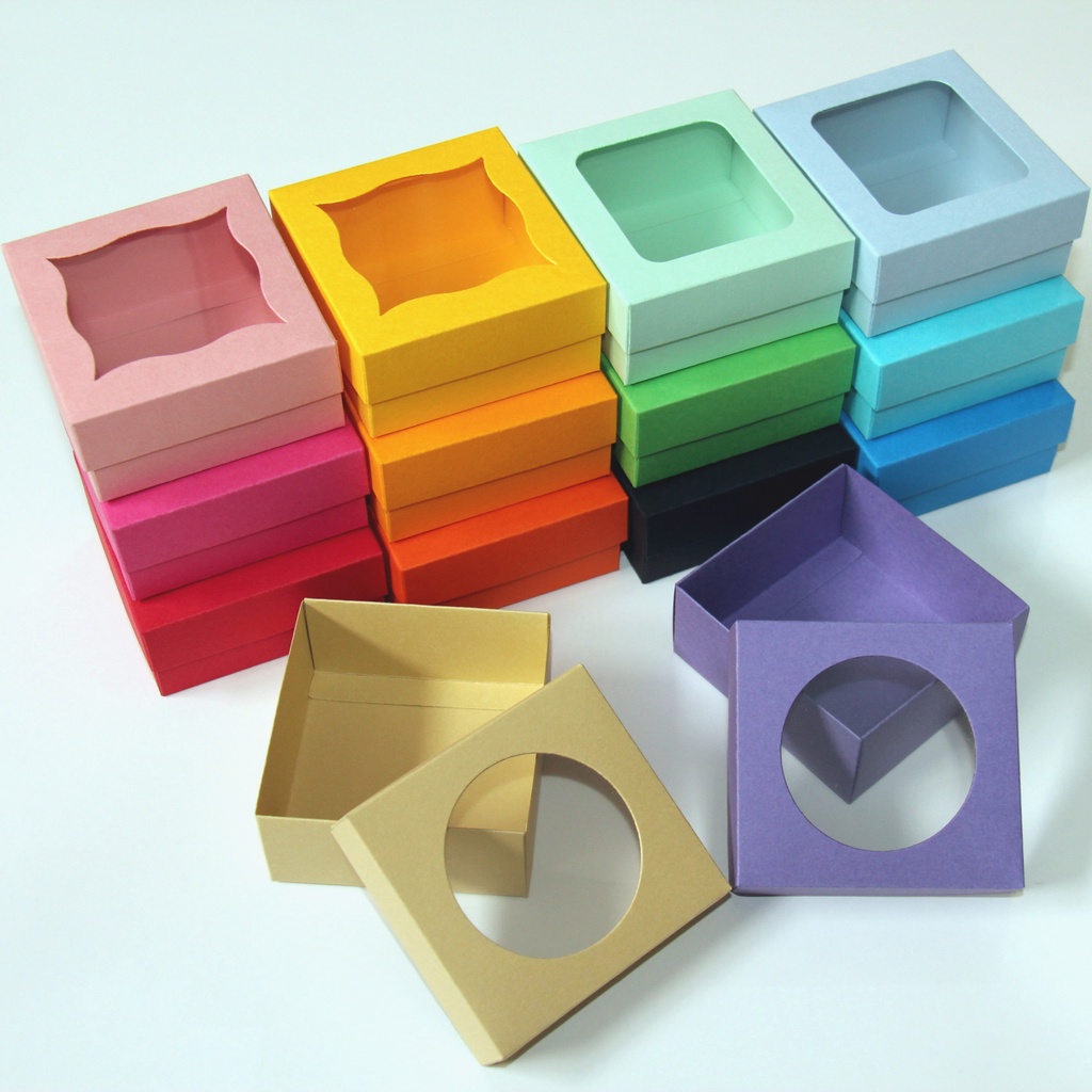 Caixa Caixinha para presente Quadrada Color com visor - 5 unid.