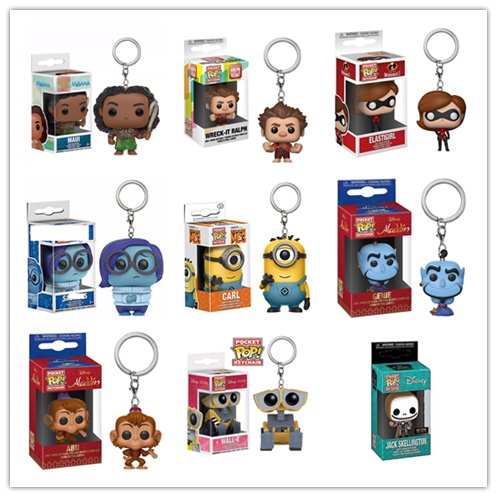 Funko POP Moana Keychain Maui Dentro Fora Sasness The Incredibles Elastigirl Abu carl sally jack genie Ação Figura Modwl Dollkeyring