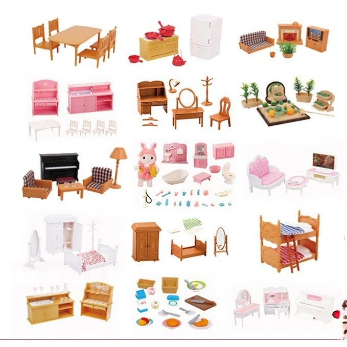 Mercadorias Spot 2021 Nova Família Floresta Quente Sala De Estar Casa Banho Montessori 1/12 Renas Conjunto De Utensílios De Cozinha Boneca Animal Modelo Brinquedos Para Menina