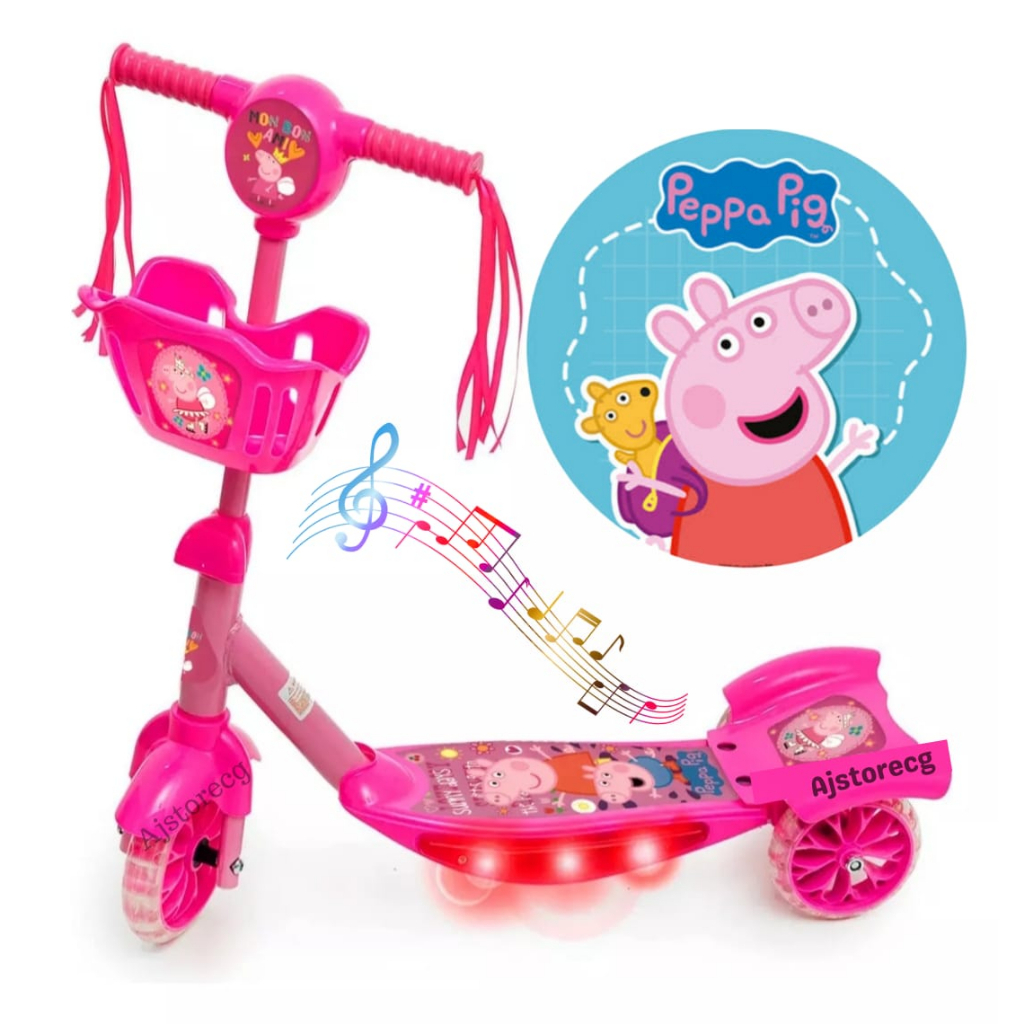 Patinete infantil menina Peppa Pig Musical e Luzes nas Laterais 3 Rodas e Cesta entrega em todo Brasil