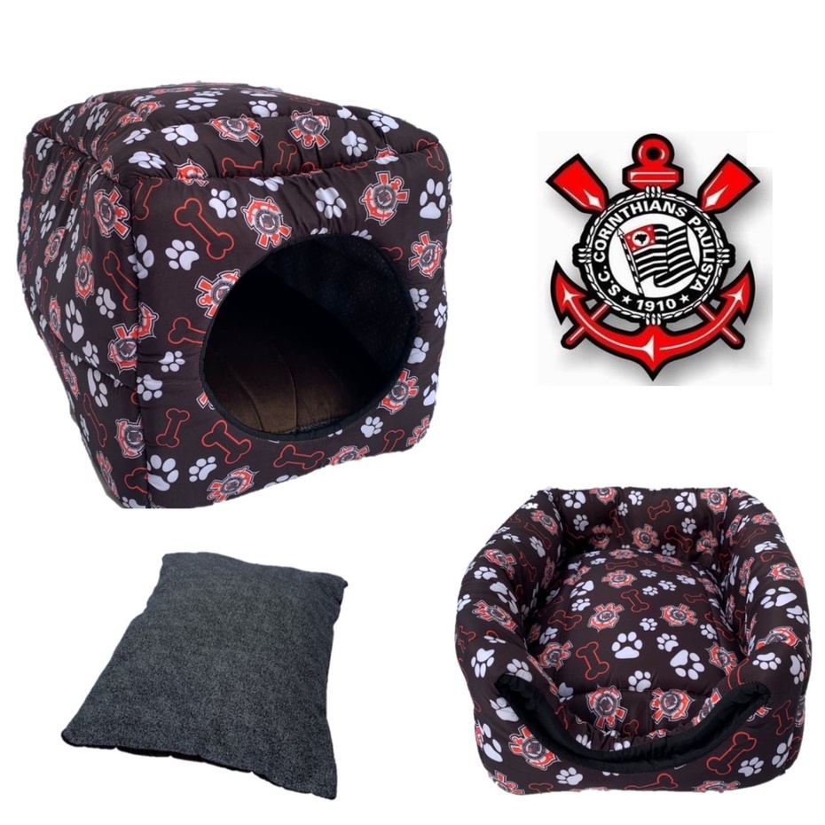 Cama Toca Iglu Corinthians 3 em 1 para Cachorro e Gato Caminha Pet