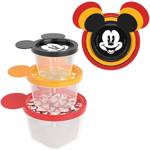 Pote De Plastico Redondo Conect Com Tampa Mickey Colors 3 pecas 130 / 240 / 430ml