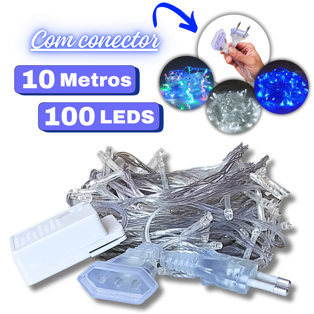 Pisca Pisca De 100 LEDs Fio 10 Metros Luz Forte Com Função Natal