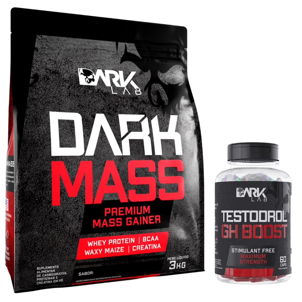 Hipercalorico Dark Mass 3kg Premium Mass Gainer Protein, BCAA, Creatina, Waxy Maize + Testodrol-Gh Boost 60 Caps Dark Lab