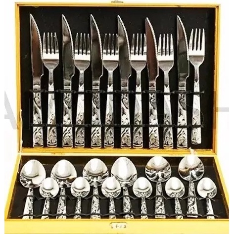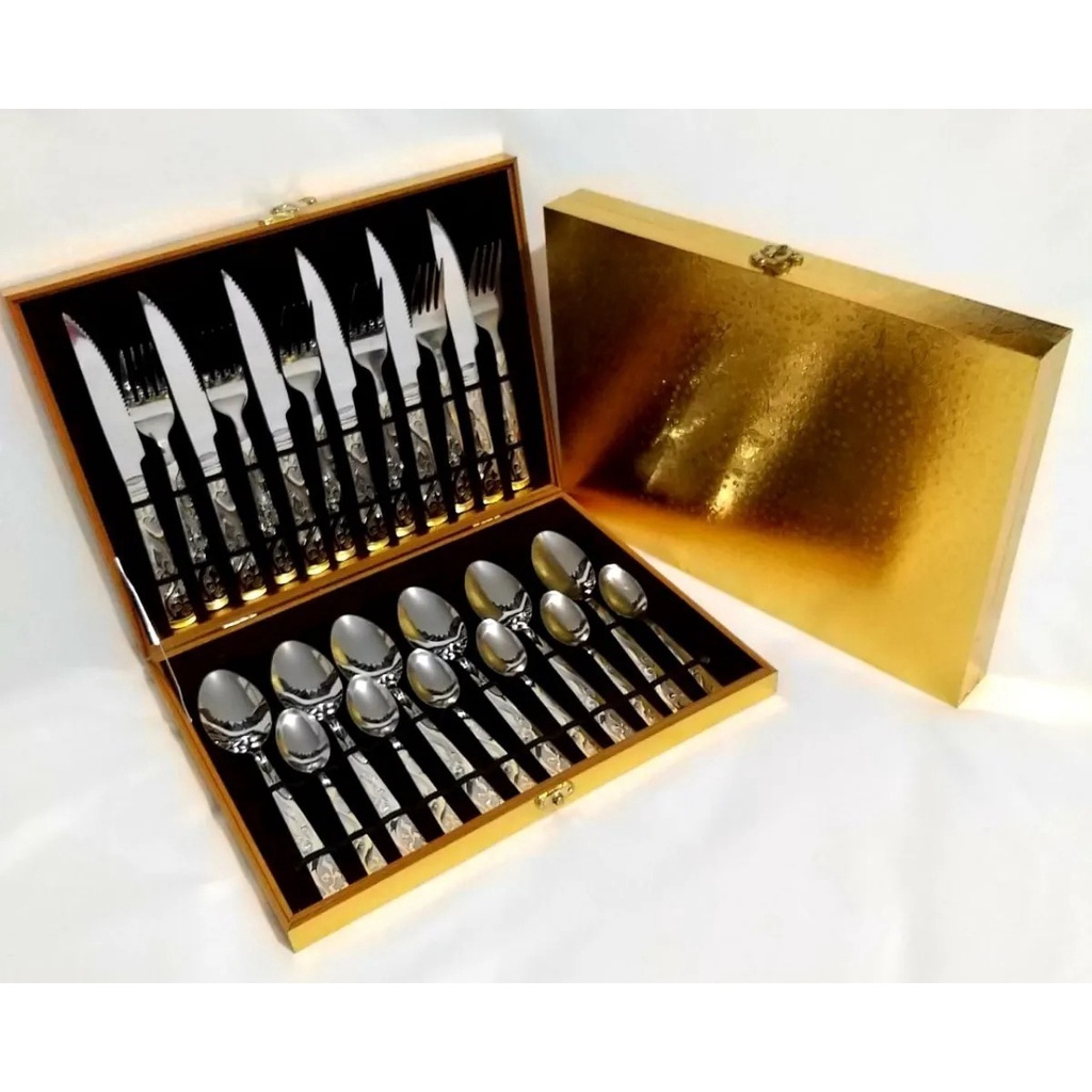 kit Faqueiro Maleta de Inox com 24 Peças em Detalhes Dourado