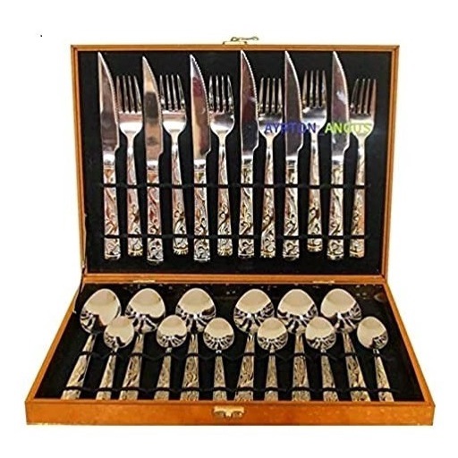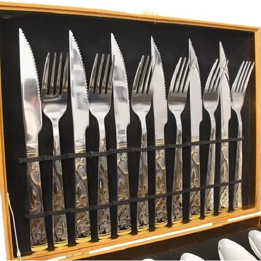 Faqueiro kit de Talheres Com 24 Peças em Aço Inox com Detalhe Dourado