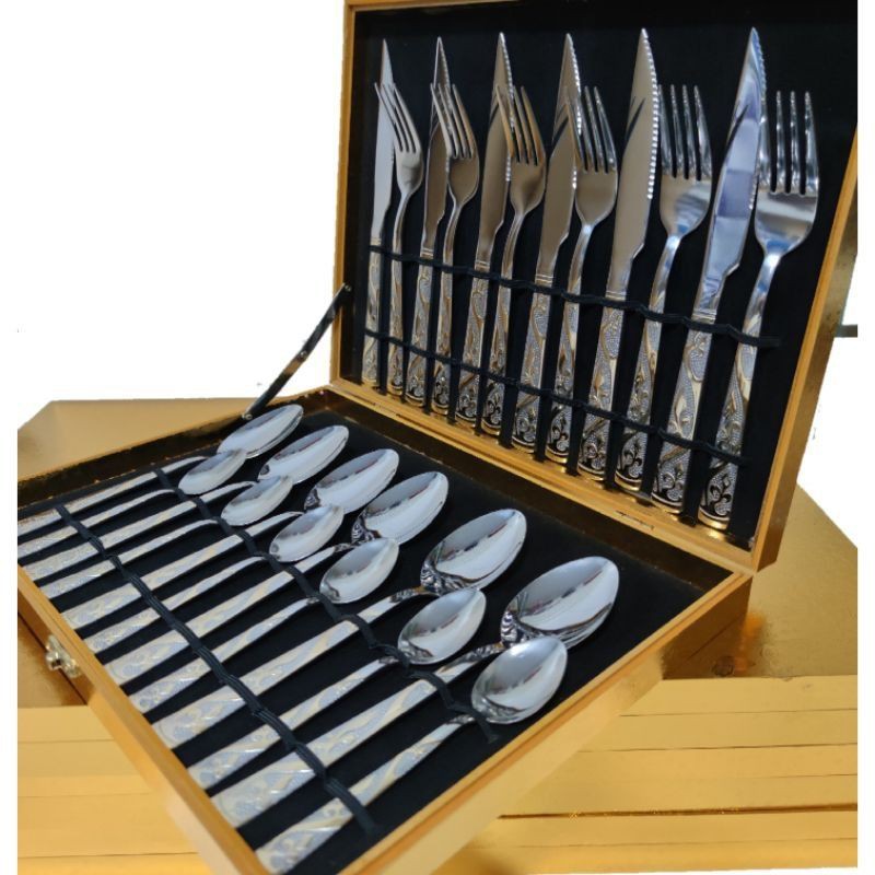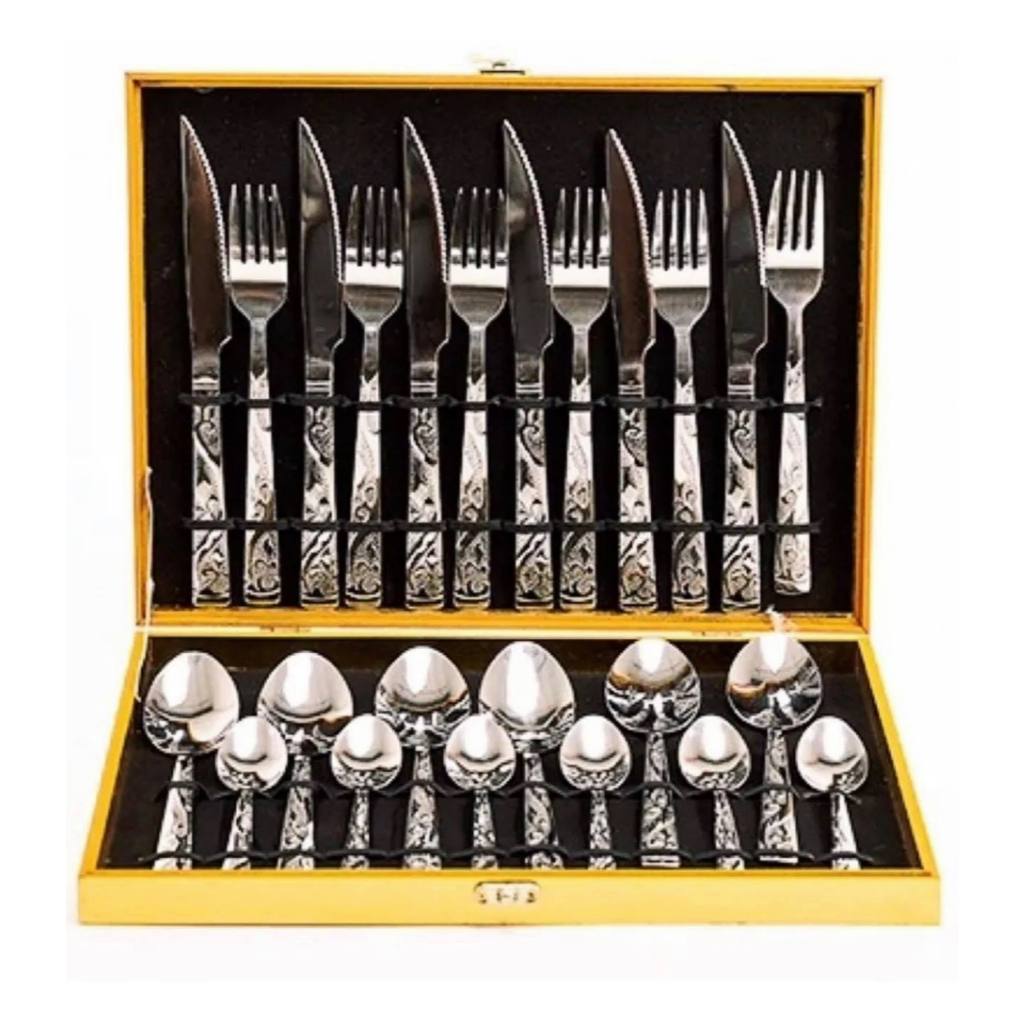 Kit Faqueiro Maleta De Talheres Inox 24 Peças Com Dourado+modelos novas