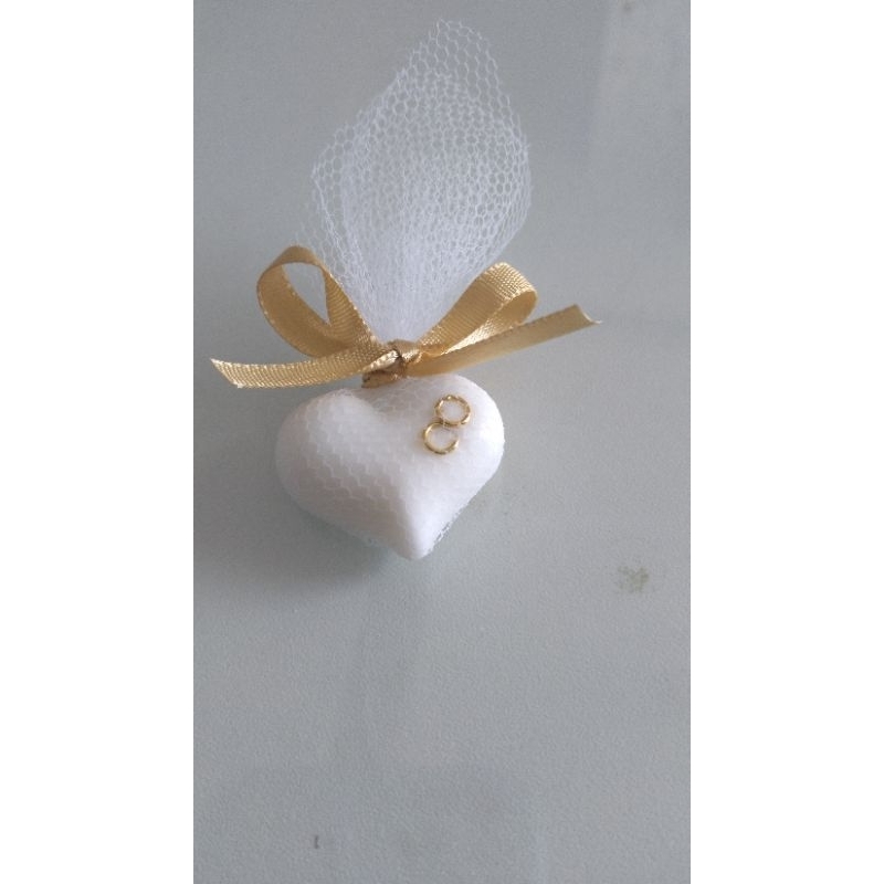 kit 20 mini coração de sabonete artesanal com Tule cetim e alianças para lembrancinha