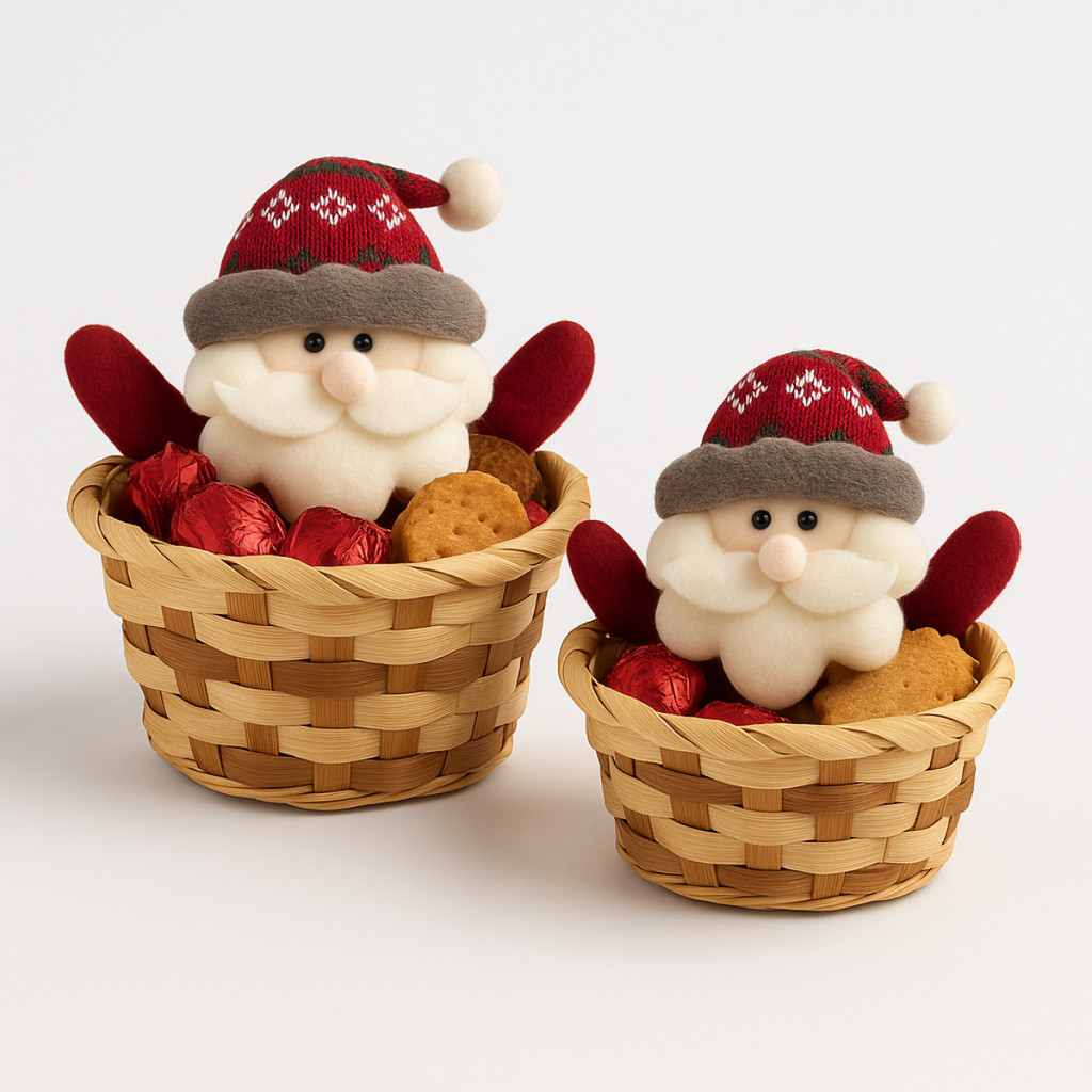 Kit Cestos de Palha C/2 Natalino Papai Noel Decorações de Natal Cesta Presente Enfeites Fim de Ano