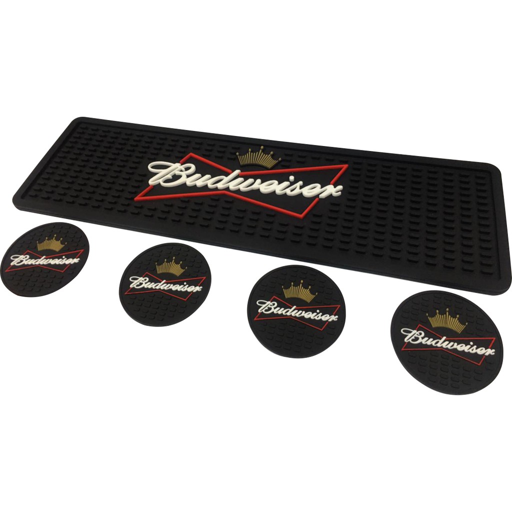 Kit Budweiser Barmat + 4 Porta copos, Material emborrachado 50x15 Cm