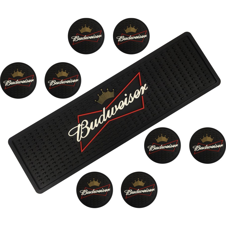 Kit Budweiser Barmat + 8 Porta copos, Material emborrachado 50x15 Cm