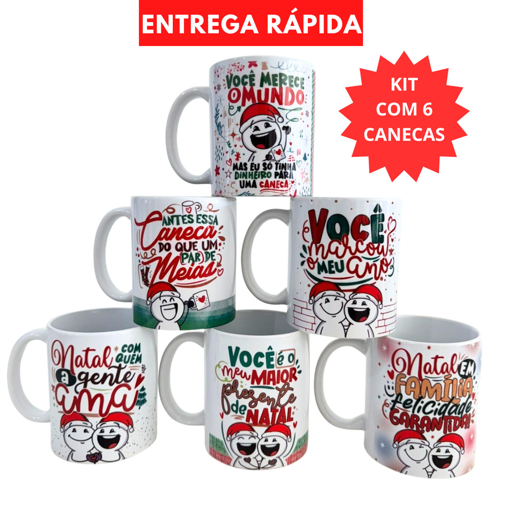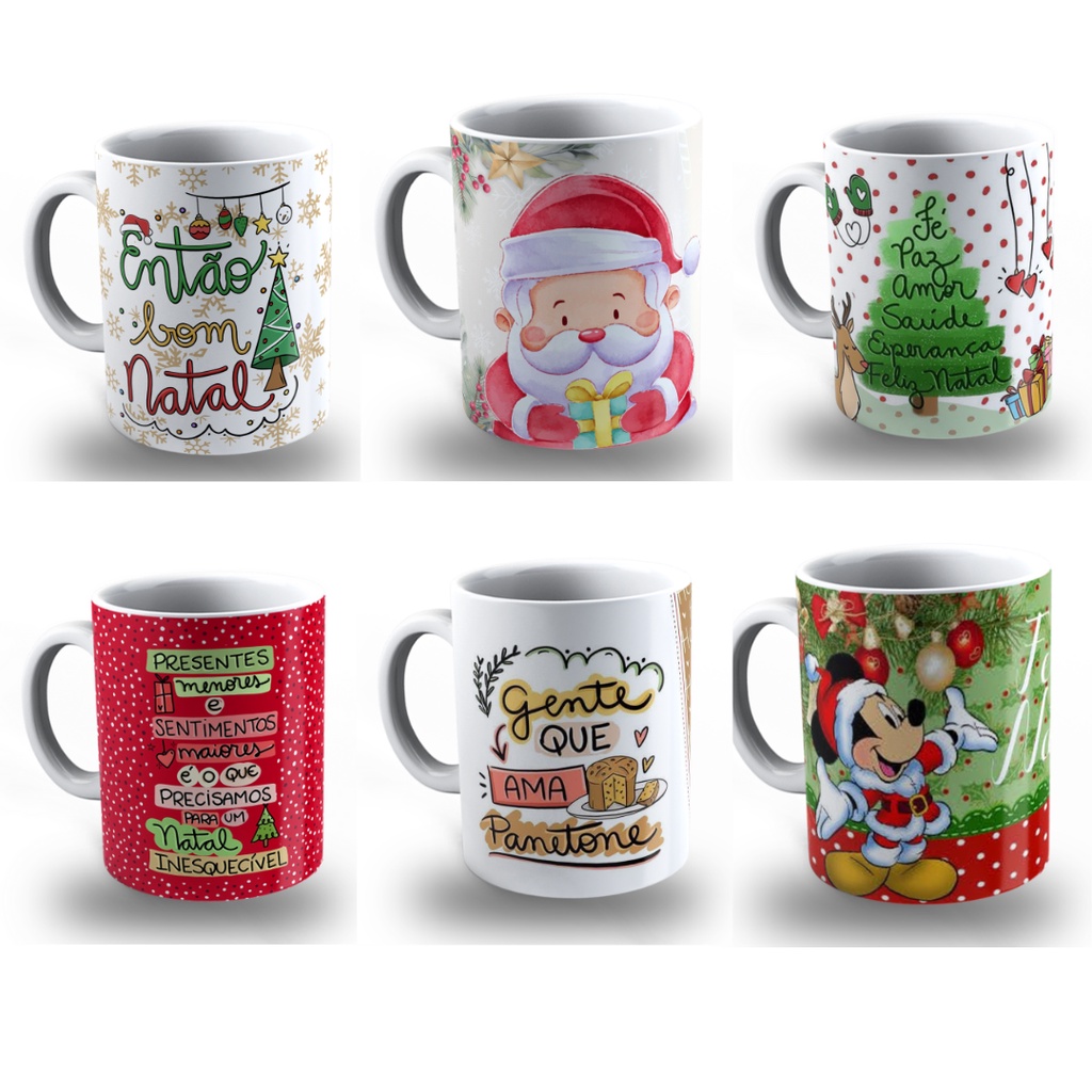 Canecas de Natal Atacado Personalizada de Porcelana Kit 6 unidades Ideal para Cesta Presente Lembrancinha Enfeite