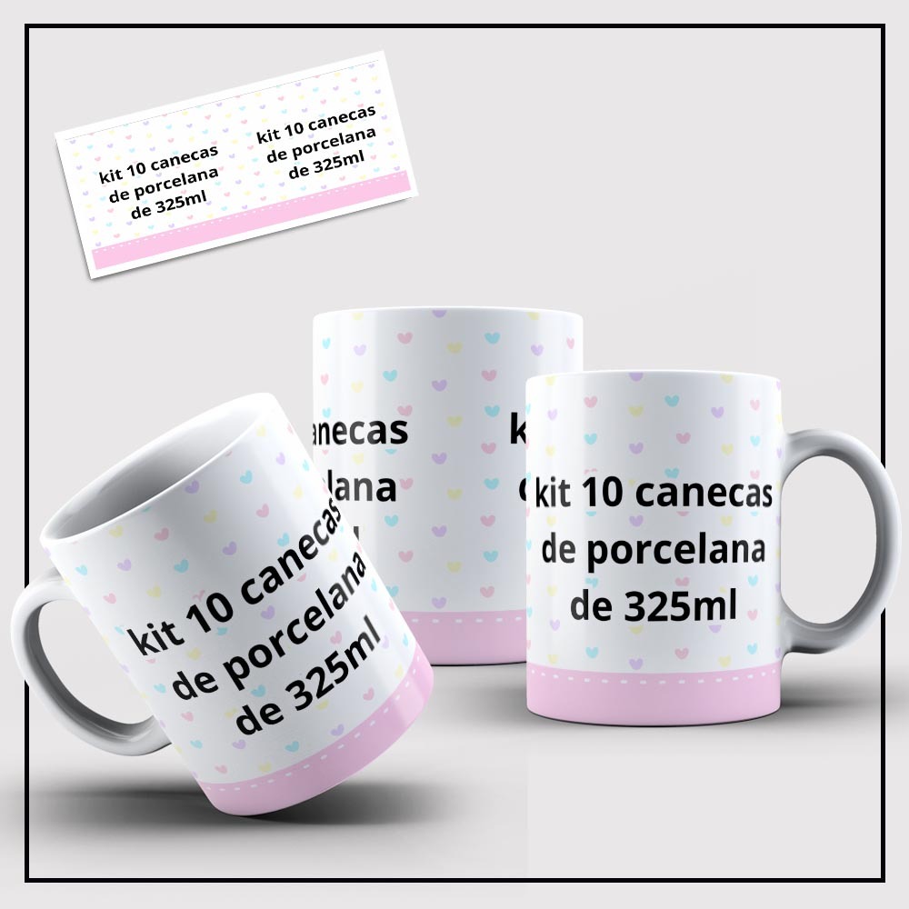 Kit 10 unidades de canecas de porcelana personalizada com qualquer arte de 325ml