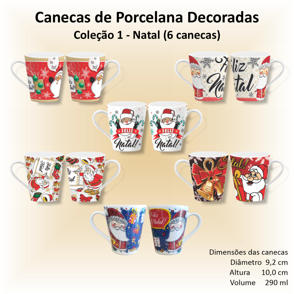 Canecas de porcelana decoradas - Coleção 01 - NATAL - 6 canecas