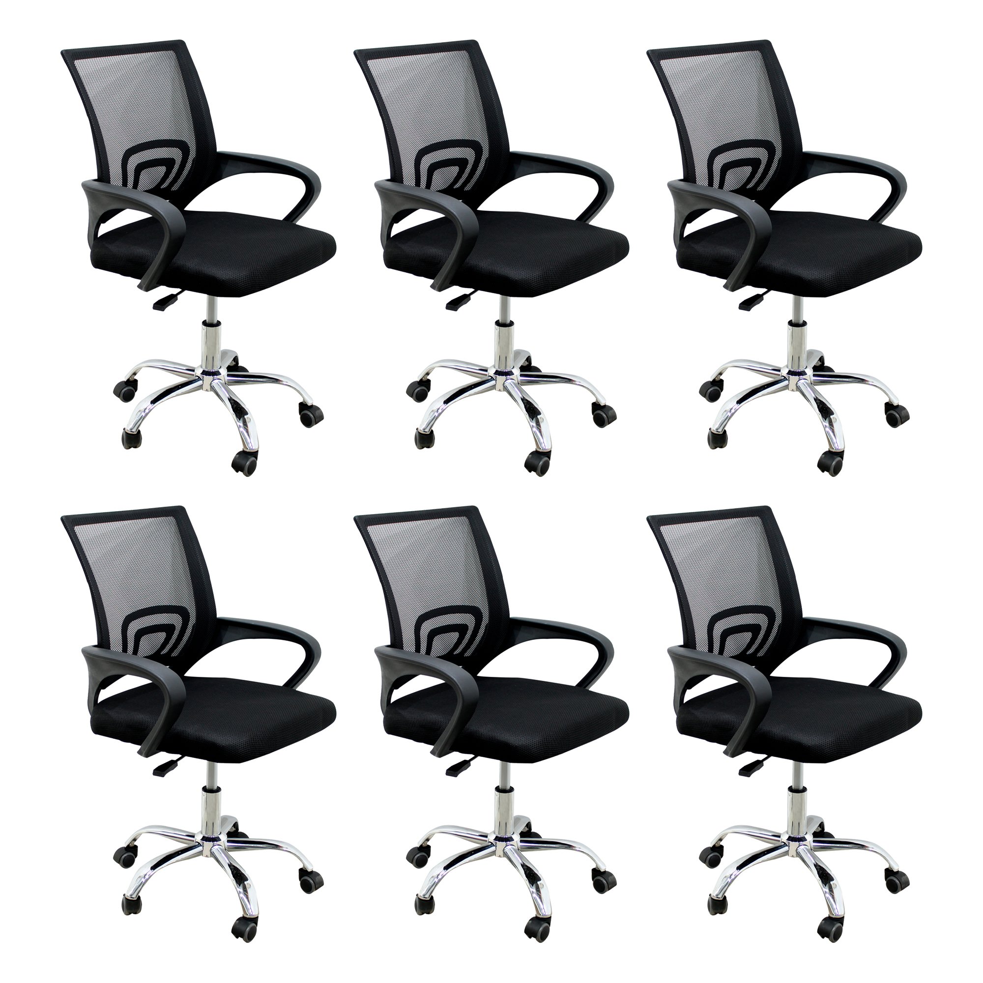 Kit 6 Cadeiras de Escritório Mesh Assento Estofado Base Giratória 9050 - Preta