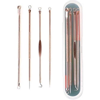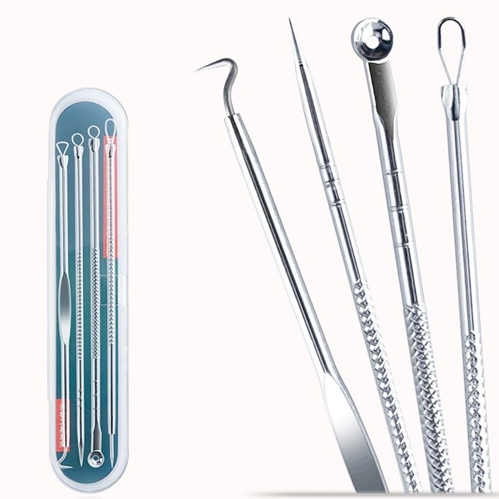 Kit Acne Espinha Extrator De Cravos Profissional Removedor 4 Pçs de Ponta Dupla com Pinça/Extrator/Agulha para Salão