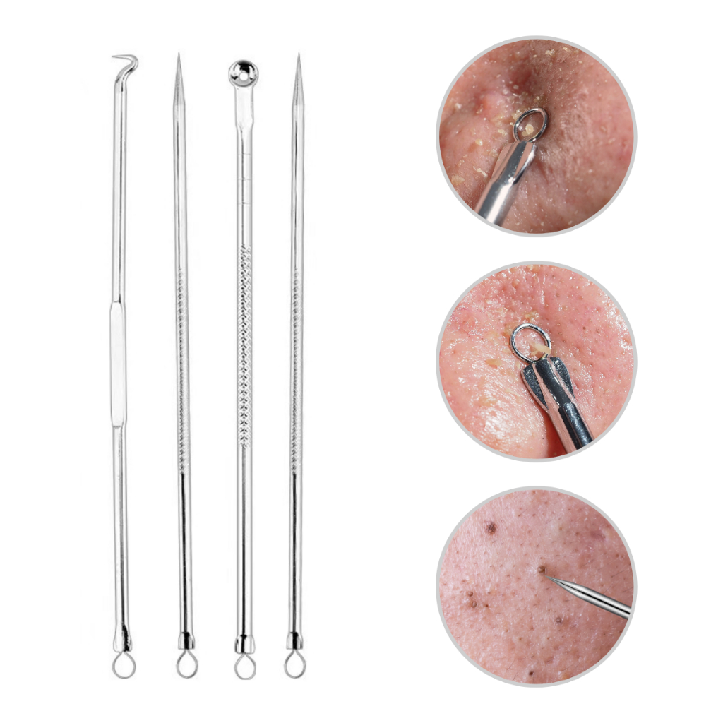 Kit 4 Acne Espinha Extrator De Cravos Profissional Removedor Pçs De Ponta Dupla Com Pinça/Extrator/Agulha Para Salão