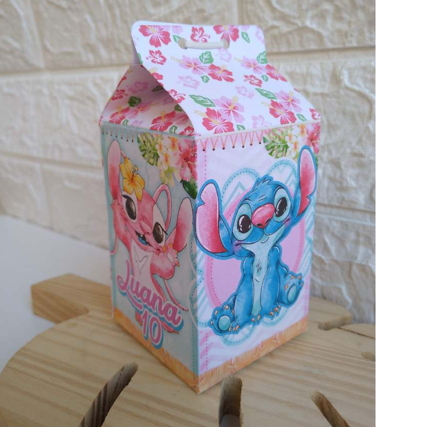 kit Caixas Stitch rosa floral Com Nome - lembrancinha caixinha para festa de aniversário personalizada milk, sushi, Pirâmide, maleta, bolsinha ou bis duplo