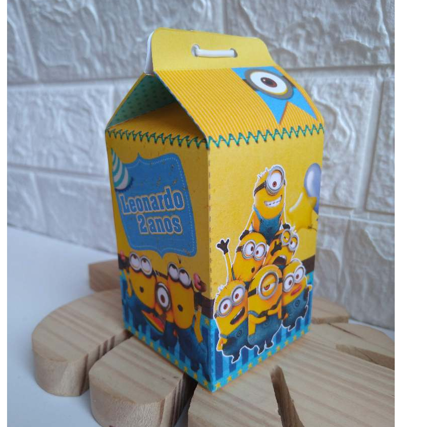 kit Caixas Minions Com Nome - lembrancinha caixinha para festa de aniversário personalizada milk, sushi, Pirâmide, maleta, bolsinha ou bis duplo
