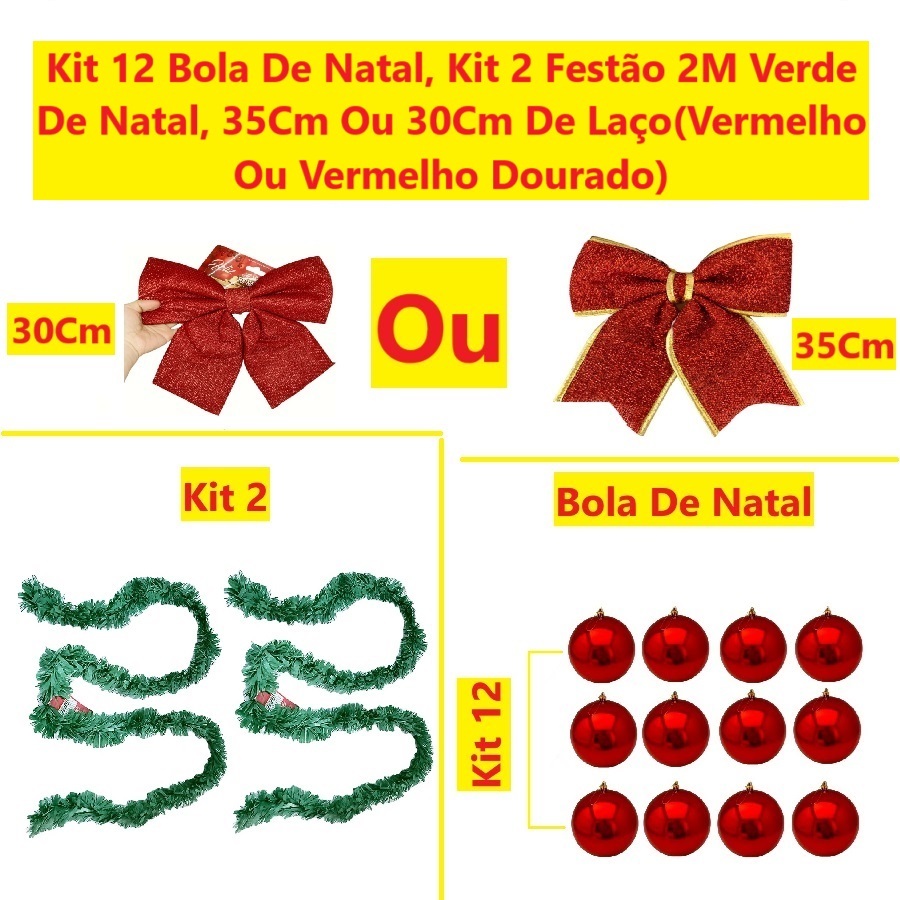 Kit Enfeites Natal Com 2Un 2M Festão Verde De Natal Kit 15 Bola De Natal E 35Cm Laço Ou 30Cm Laço