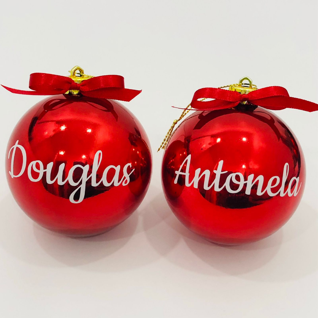 Bola Natal Personalizada 6cm com nome ou palavra a sua escolha kit com 8 unidades