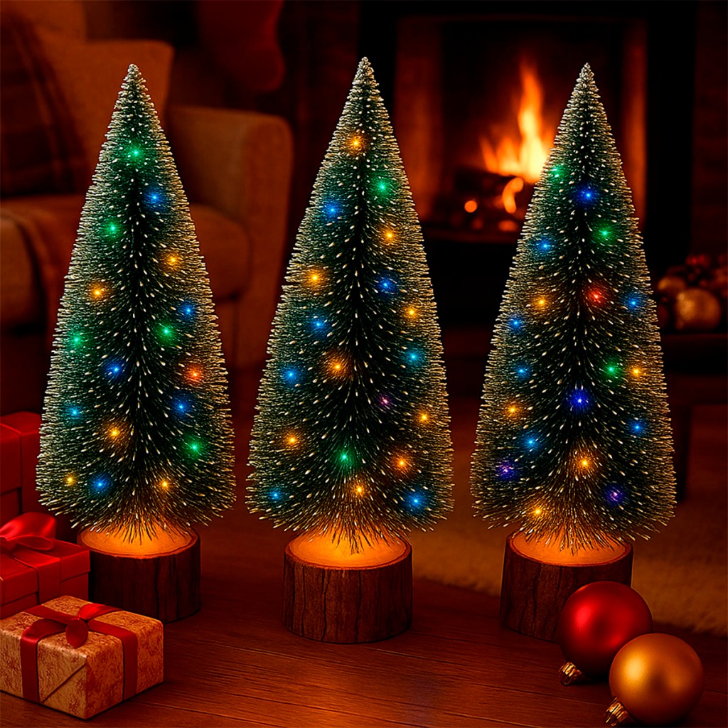 Kit 3 Mini Árvore De Natal Enfeite Com Led Brilho Decoração Natalina Fofa 20cm